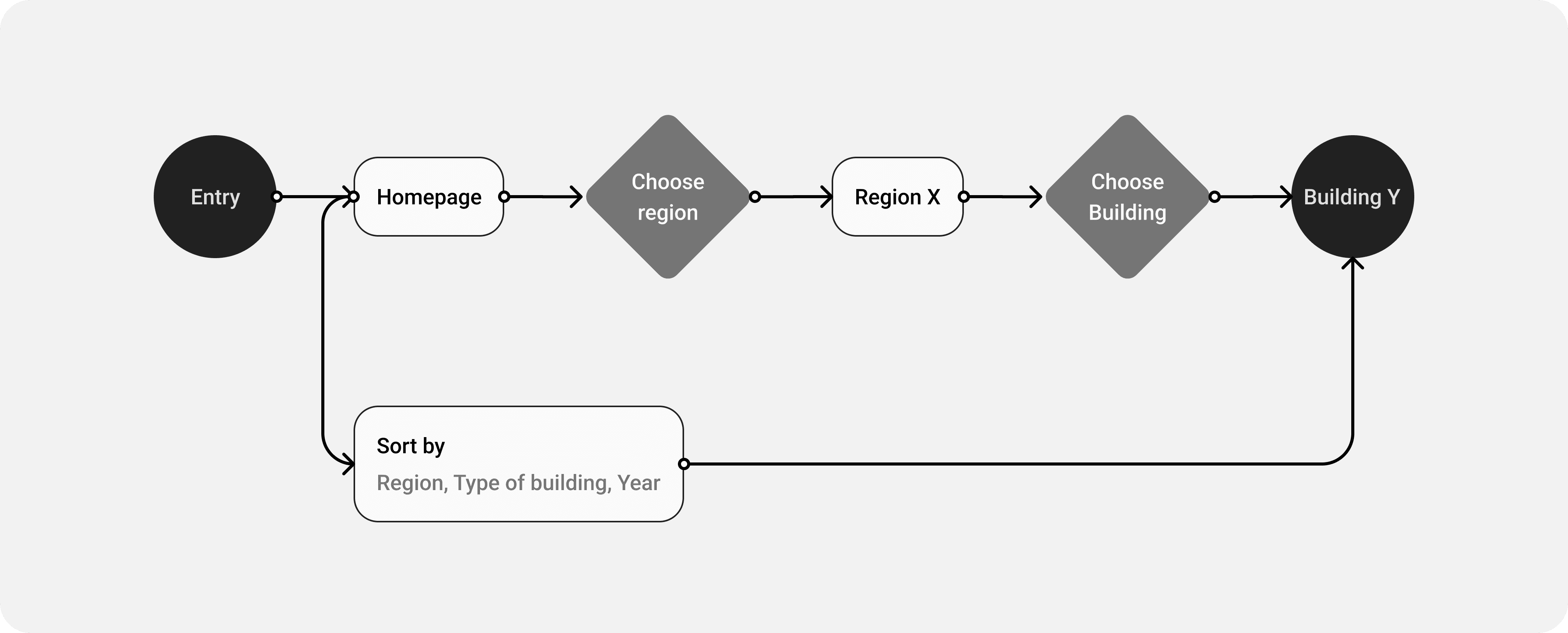 After building the sitemap, I mapped out the user journey. This illustrates the site's main flow.